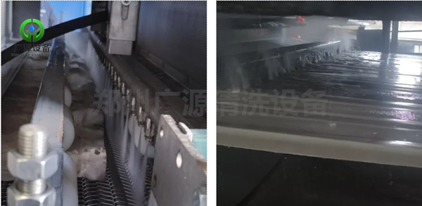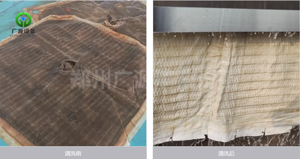 清洗前后的对比情况可参照下图。清洗后,滤布清洗效果良好,清洗均匀度较高,缩短了清洗所需时间,降低了人工成本投入,并减轻了工人的劳动负担。