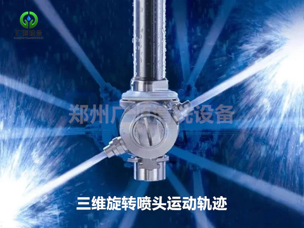 具体清洗流程:将特制三维洗罐器伸缩机构安装于发酵罐入口,伸缩杆伸入罐内后,可实现伸缩及沿内壁周向移动;当三维洗罐器水平旋转时,水射流形成的旋转力矩带动喷嘴在垂直面内旋转。三维旋转喷头与伸缩杆的复合运动,使高压水射流可覆盖发酵罐内任何位置,完成内部清洁作业。