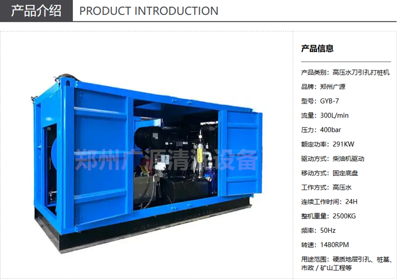 产品描述:高压水刀引孔打桩机利用高压泵产生高压水射流,具备作业精准施工、适应复杂地质以及环葆节能的优势 。广泛应用于建筑工程(高层建筑、桥梁、港口码头等)、水利工程(水坝、防洪堤)及市政工程(地下综合管廊、道路桥梁维修加固)打桩施工作业。